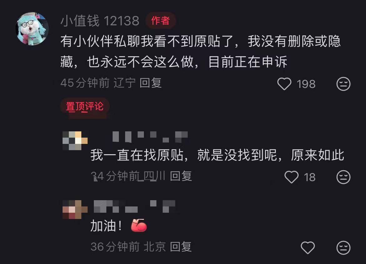当事人在评论区留言:“我没有删除或隐藏,也永远不会这么做,目前正在申诉。”