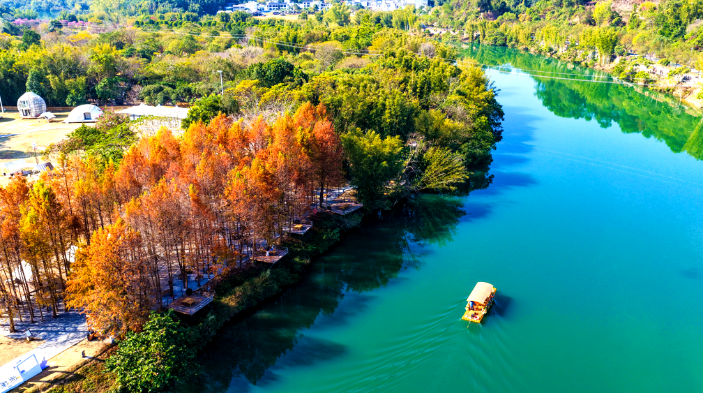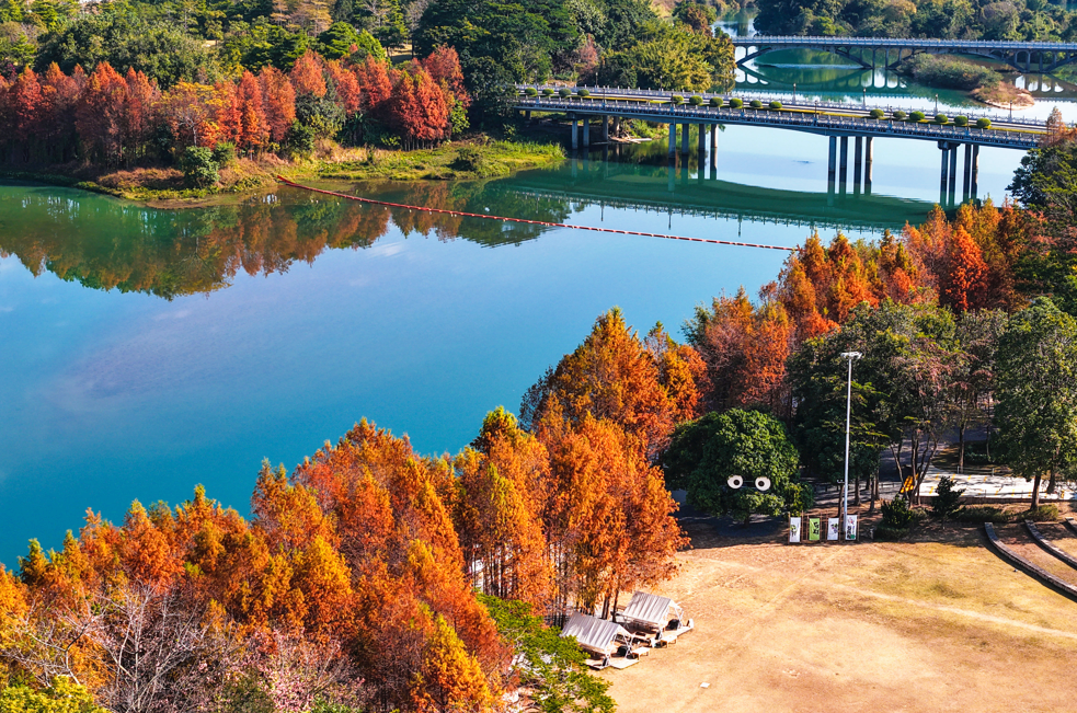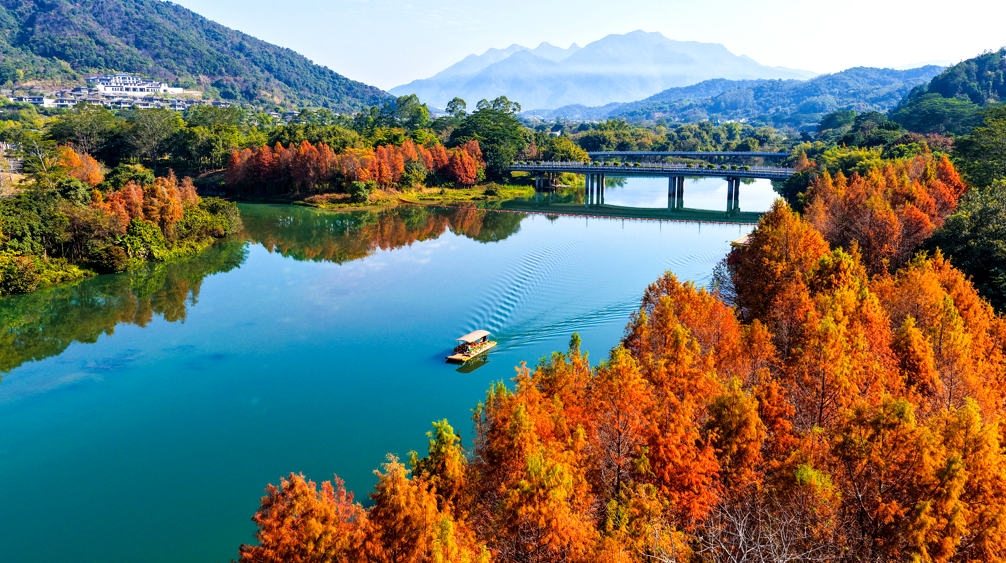 股票十大平台 层层叠叠的红叶 将河面晕染出暖色调