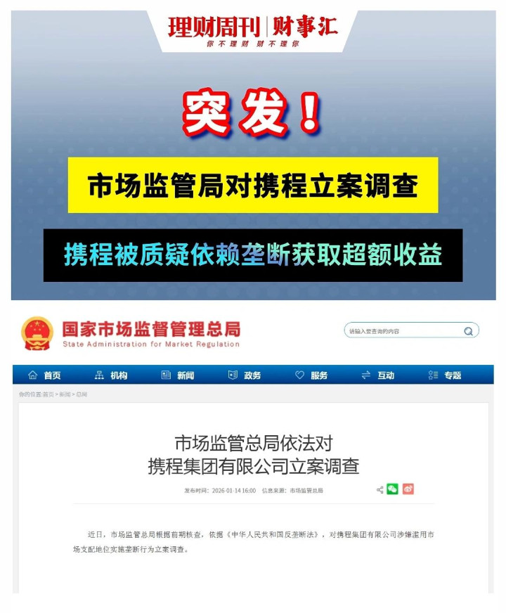 2026年1月14日,市场监管总局对携程涉嫌垄断立案调查的消息,让这家在线旅游巨头彻底陷入舆论漩涡。